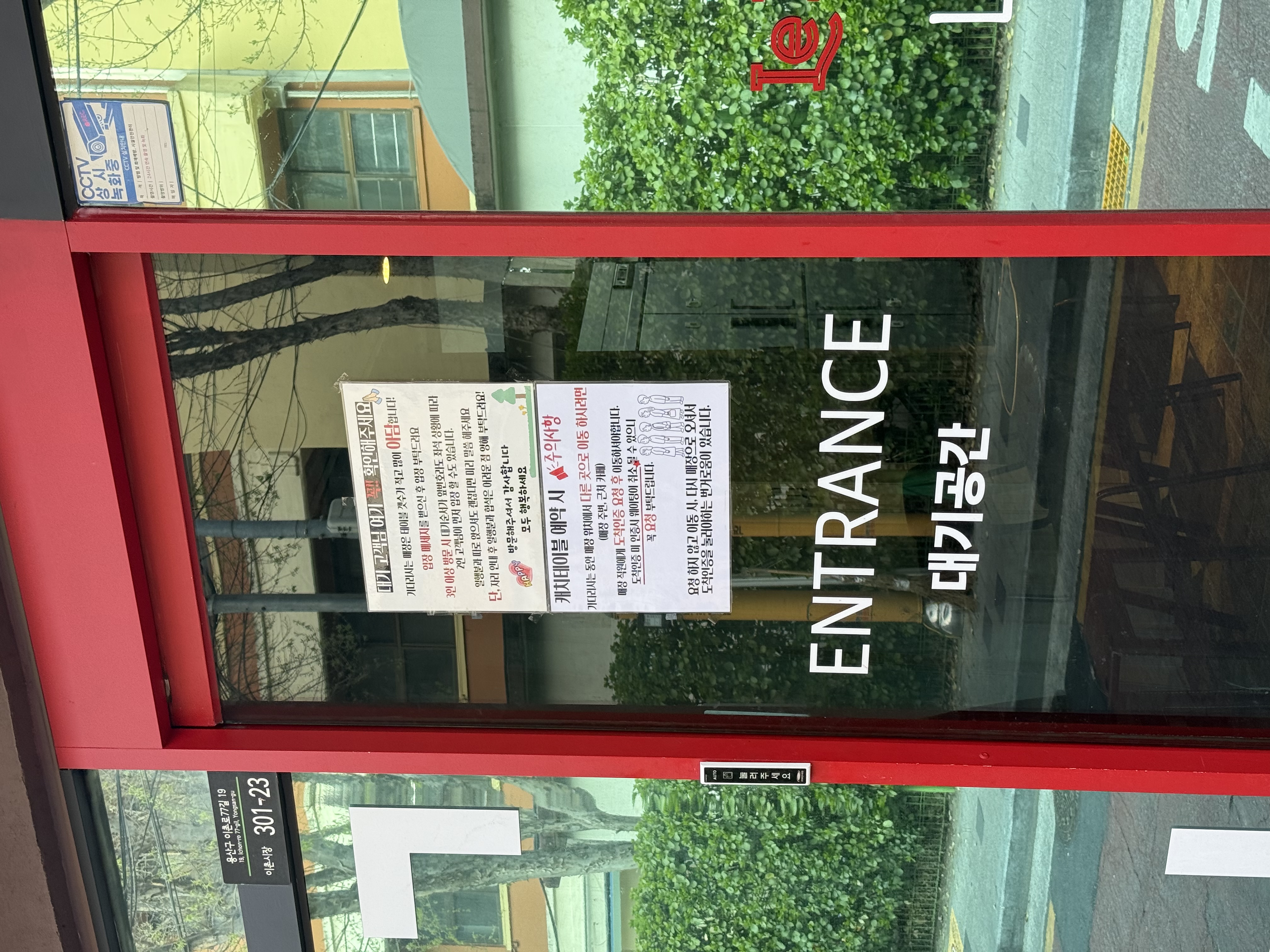 입구 유리문에는 주의사항과 대기 안내가 붙어있다. 항상 웨이팅이 있는 집이라 그런 것 같다.